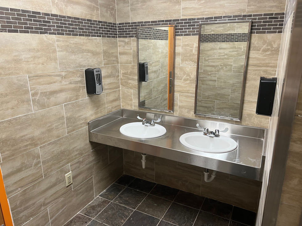 This project showcases the renovation of storefronts and outdoor spaces, featuring window tinting, tiled floors, and restroom vanity remodel. The images capture the transformation of commercial spaces with a focus on modern design and functionality.